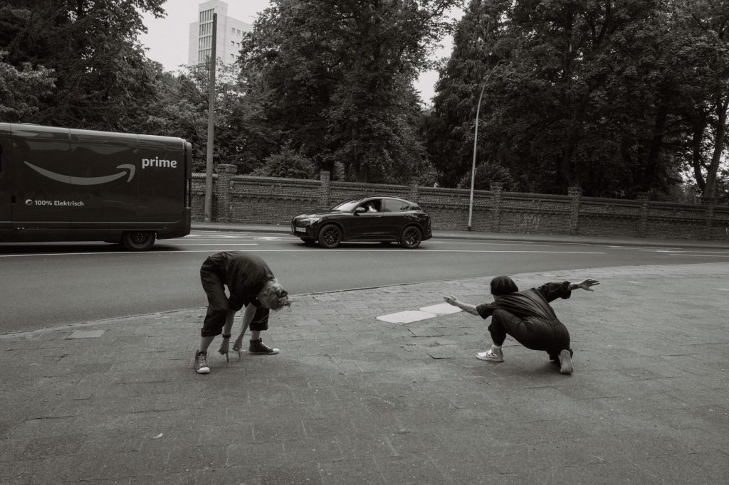 BEOBACHTEN: Ich schenke meinen Mittänzer*innen meine volle Aufmerksamkeit. Ich darf währenddessen die Perspektive verändern oder den Ort, von dem aus ich das Geschehen beobachte.